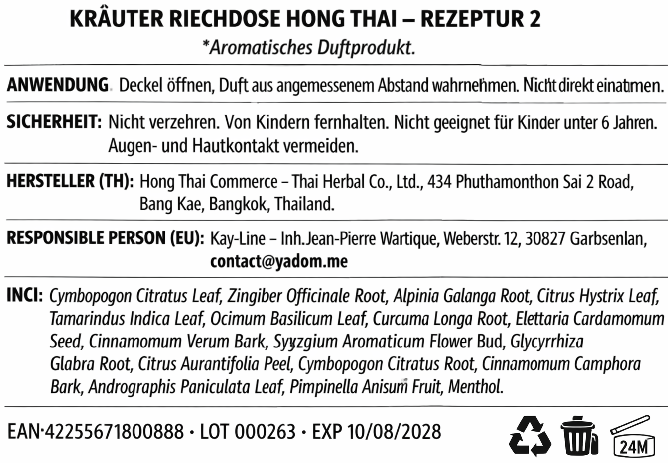 Jede Hong Thai Duftdose wird versiegelt geliefert, damit Duft und Qualität optimal geschützt bleiben.